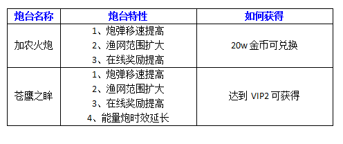 作为一名进击的渔夫,怎么能没有进击的装备?在街机竞技捕鱼的世界里,炮台就是你的忠实战友,是在每一场比赛中,陪你在硝烟弥漫中杀出重围的左膀右臂。新版本登场后,游戏里亮相的八款星级炮台的功能属性,获得途径如何,想必是各位玩家关心的重中之重,今天就给大家揭开帷幕。